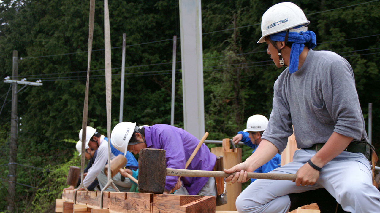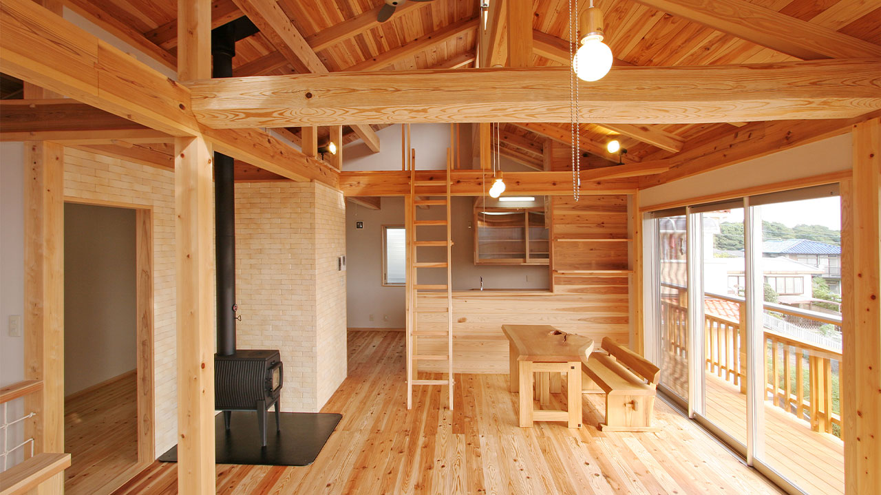 地産地消は、⾷べ物に限ったことではありません。家をつくる場合にも、その地で育った⽊を使うことで気候や地域とのバランスがとれます。私たちは地元の⽊を使って、三⽅よしの家づくりをめざしています。