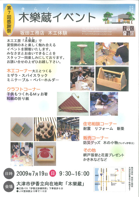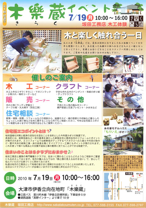 第10回木樂蔵イベント&木の家をつくる職人展7月22日(日)開催のご案内