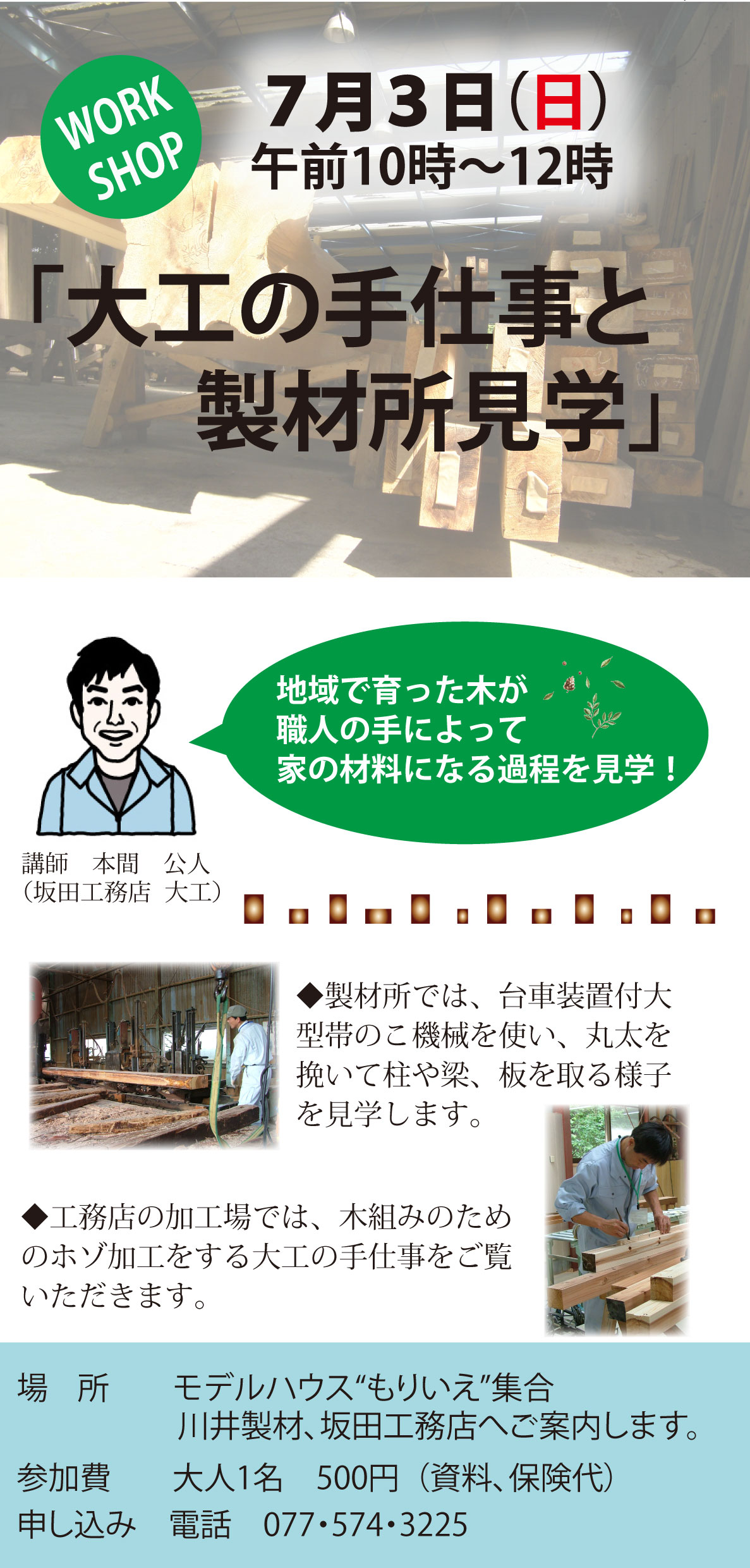 7月3日(日)大工の手仕事見学と製材所見学のご案内
